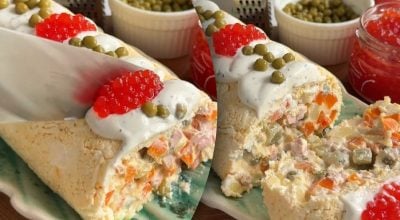 Resepti, joka yllättää jopa nirsoimmat vieraat – salaatti ”Olivier” rullassa. Maku on sama, mutta esitystapa on täysin erilainen, tällaisesta lautasesta tulee pöydän todellinen koriste. Loistava idea niille, jotka odottavat ystävien vierail