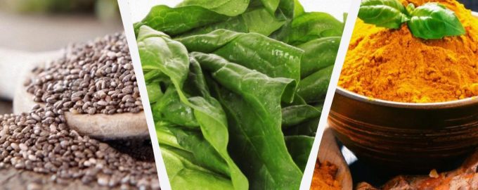 Chia, pinaatti ja kurkuma – superfoodeja / kollaasi My, kuva depositphotos.com