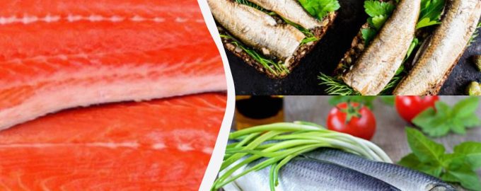Mitkä kalat sisältävät runsaasti omega-3-rasvahappoja: lohi, makrilli, sardelli, sardiini ja silli.